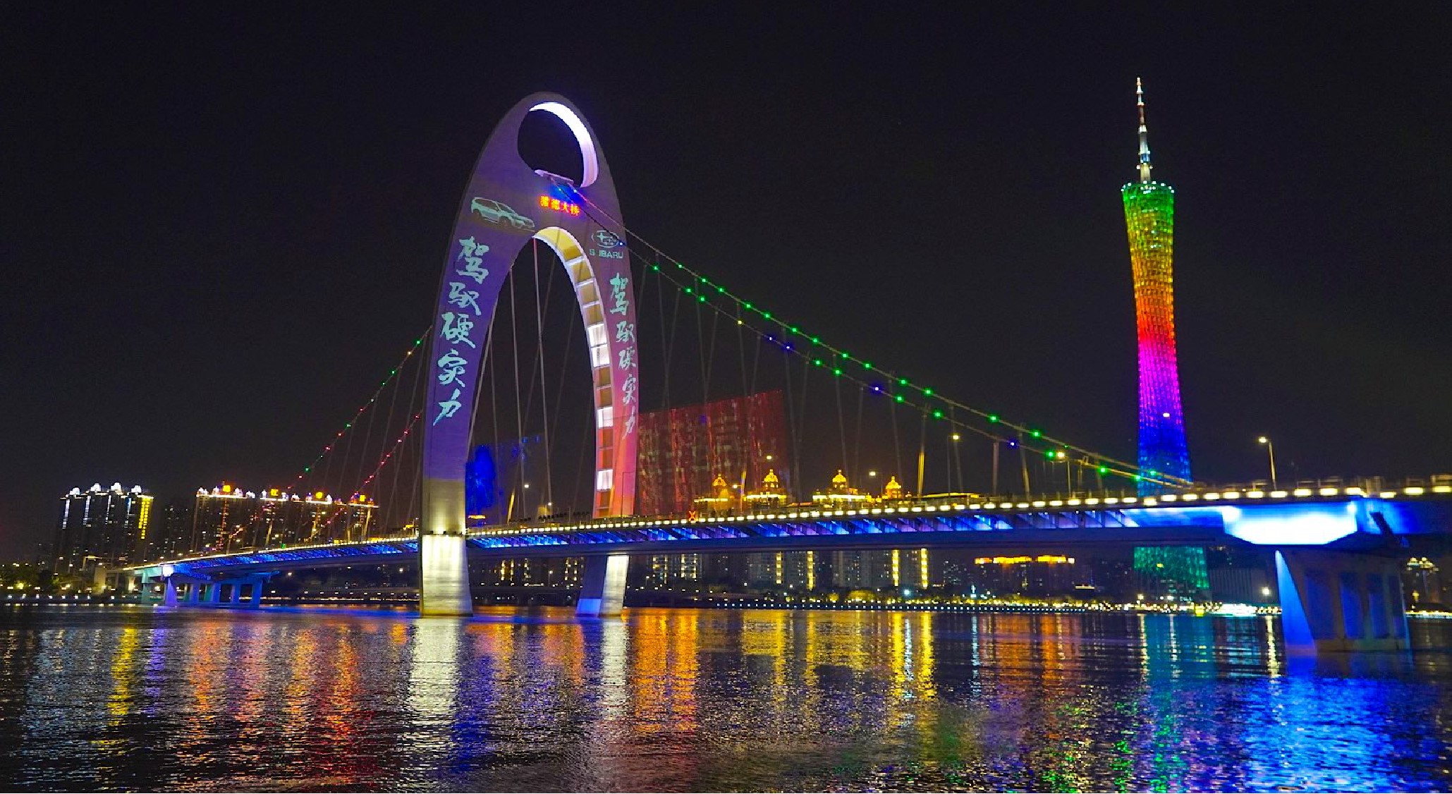 廣州地標獵德大橋燈光秀廣告