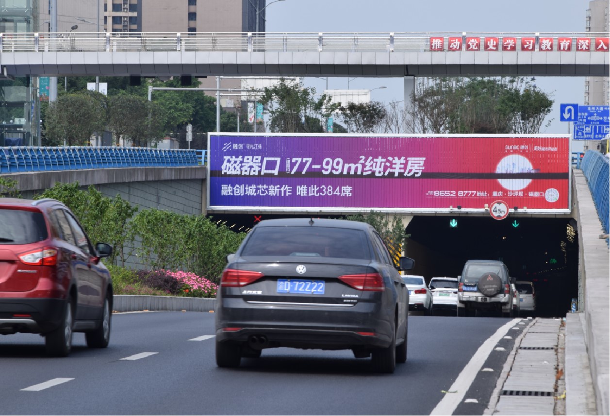 媒體位于星光大道重慶財(cái)富購(gòu)物中心旁洪湖立交下穿道,附近積聚了精信中心、重慶金融中心、上丁工業(yè)園、國(guó)家稅務(wù)總局重慶市稅務(wù)局等大型shopping mail、高端寫(xiě)字樓和政府重要機(jī)構(gòu)。媒體位于下穿遂道兩端,離地近,面積大,可雙向覆蓋北區(qū)高端居住區(qū)至照母山科技創(chuàng)新城上下班核心消費(fèi)人群