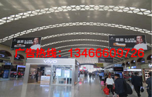 | 出發層候車大廳雙面吊旗 · 4幅 媒體尺寸(寬x高x面):100㎡ ?( 10m×5m×2面) 投放形式:1塊/組 媒體價值: 1、此媒體為候車區上方吊旗,面積大,為東北區域面積最大吊旗,聯排效果震撼,且候車室內無死角,彰顯品牌形象。 2、單個媒體顯著,廣告效果好,100%覆蓋候車人群。 |