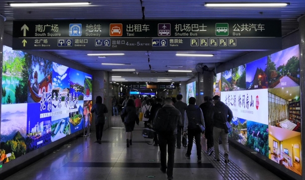 北京西站廣告-高鐵、地鐵通道LED中央大屏東西側燈箱廣告