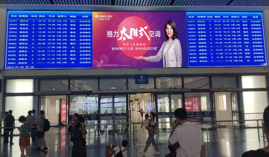 媒體位置:一層進(jìn)站大廳、一二層大廳中央