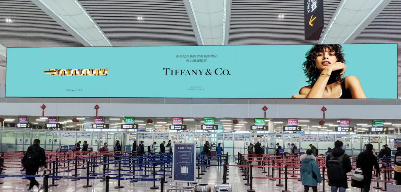 ① T2航站樓國內出發安檢上方。 ②覆蓋100%國內出發旅客。