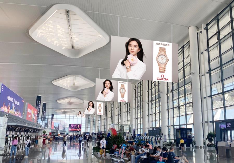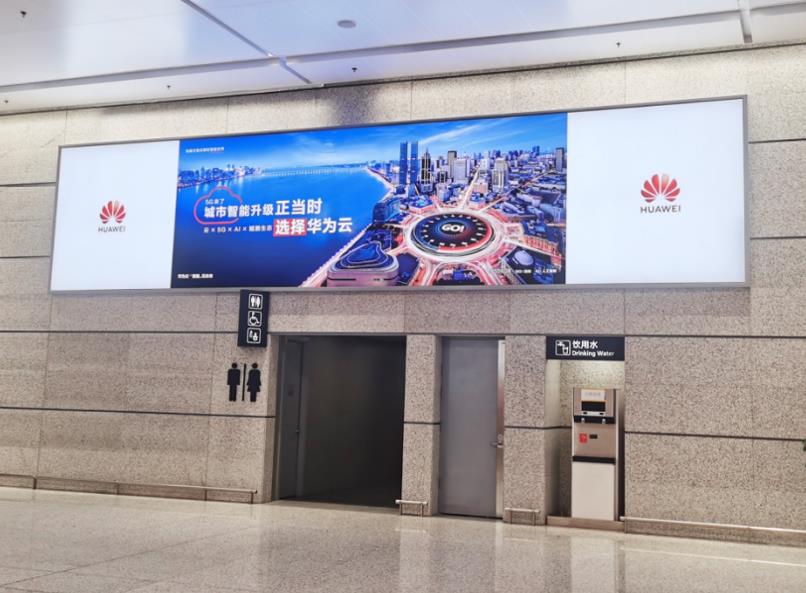T2國內(nèi)出發(fā)安檢通道右側(cè)墻體上方led大屏廣告