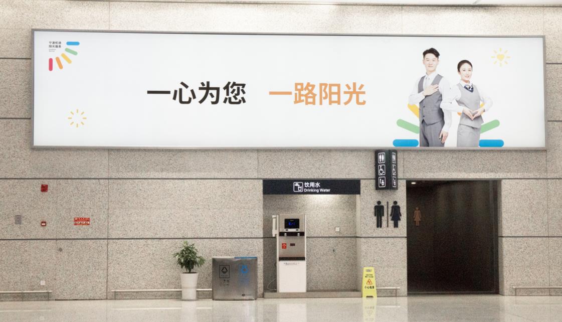T2國內(nèi)出發(fā)安檢通道左側(cè)墻體上方燈箱廣告