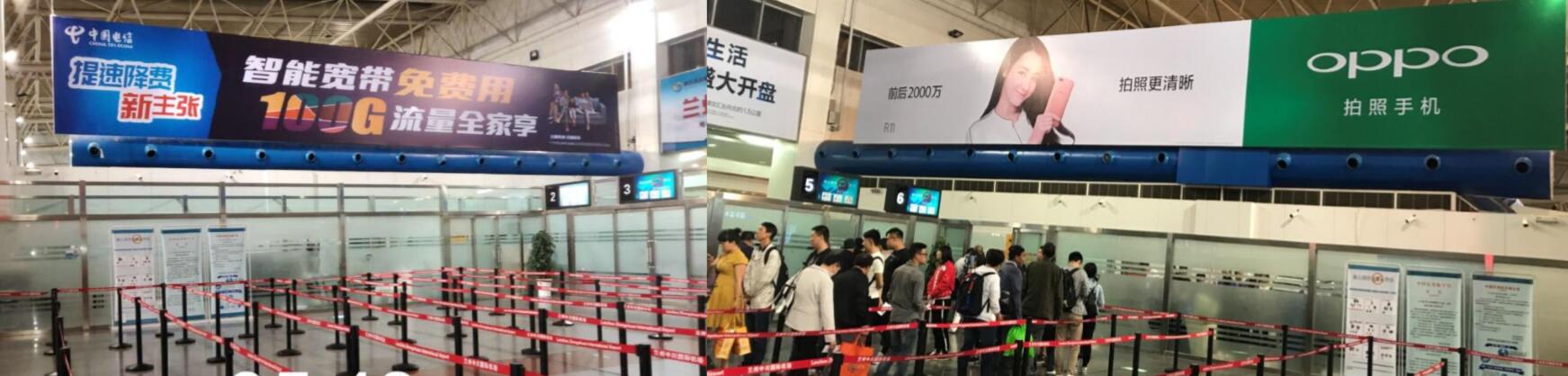 蘭州機場出發大廳安檢正上方燈箱廣告