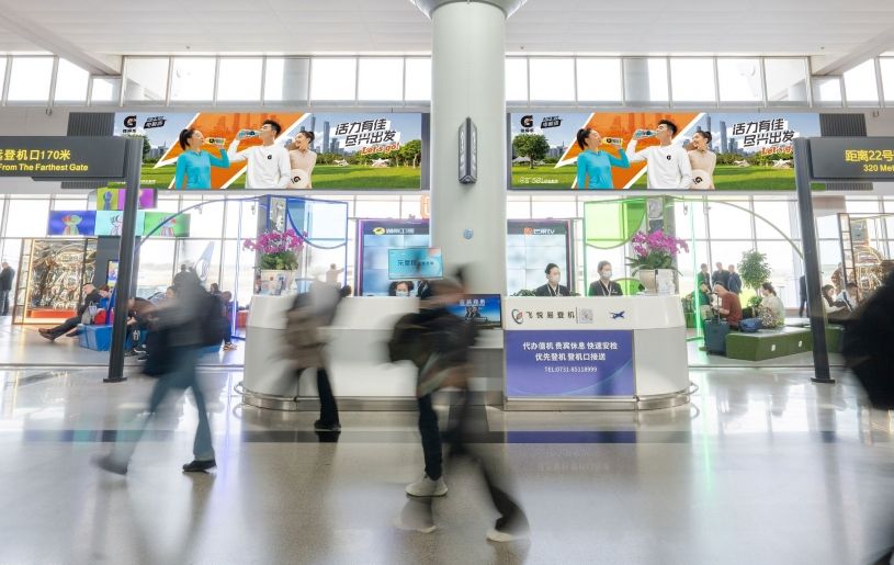 長沙黃花機場廣告 –?T2 出發入口兩側頂部燈箱廣告