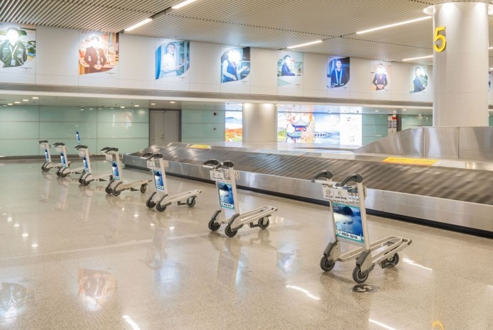 安檢區外大型行李手推車廣告