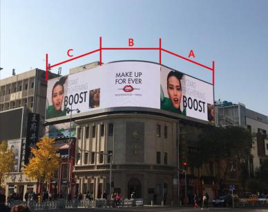 播放時(shí)間:7:00 - 23:00;媒體規(guī)格:31.6米(寬) x 12.7米(高)=402平方米