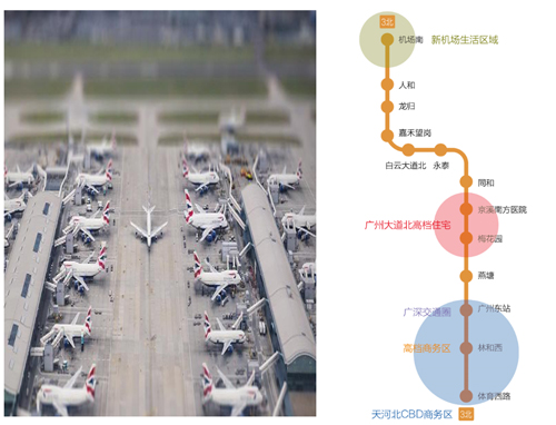 3北線 ——機(jī)場快線:3北線南起體育西路站,往北直達(dá)廣州新白云國際機(jī)場。客流貫穿于廣州高端商務(wù)區(qū)(天河北),廣州大道北(廣州北部樓盤密集區(qū)),花都新區(qū),以及新白云國際機(jī)場之間,匯聚廣州最高端的地鐵客流。3北線是乘客往返市區(qū)與機(jī)場之間的首選交通工具。