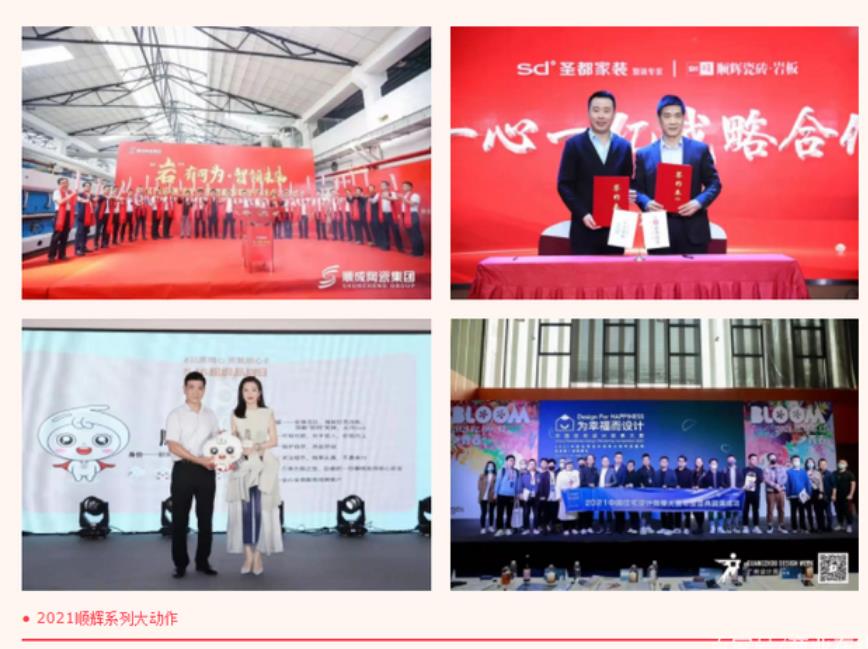 2021年,對于順輝人來說,是充實(shí)而忙碌的一年。3月,集團(tuán)第5條巖板智能生產(chǎn)線點(diǎn)火投產(chǎn),為全年巖板銷售提供強(qiáng)有力的保障;4月,順輝瓷磚·巖板攜手圣都家裝簽署“一心一億”戰(zhàn)略計(jì)劃,深耕整裝/家裝設(shè)計(jì)師渠道取得重要成果;5月,“516超級品牌日”啟動,李冰冰親臨助陣,引爆全網(wǎng)億+流量,品牌知名度與影響力得到進(jìn)一步提升;隨后,與廣州設(shè)計(jì)周合作發(fā)起的《為幸福而設(shè)計(jì)——中國住宅設(shè)計(jì)效果大賽》在全國80多個重點(diǎn)城市落地,通過舉辦系列城市沙龍與論壇游學(xué)活動,成功與全國五湖四海的設(shè)計(jì)師實(shí)現(xiàn)鏈接。一系列的大動作讓順輝品牌在整裝/家裝設(shè)計(jì)師渠道實(shí)現(xiàn)流量轉(zhuǎn)化,助力業(yè)績倍增!