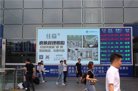 為了更好、更快、更準確地傳播品牌的核心價值,佳慕利用一線城市特級站點人流量大、覆蓋范圍廣、亮相頻率高等特點,以高端特大廣告牌為載體,通過LED站點時刻表特大屏幕投放形式聚焦推廣。